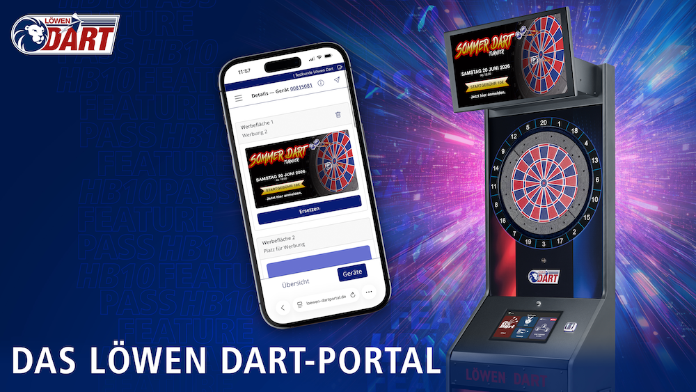 „Der Zugang erfolgt über www.loewen-dartportal.de mit den bekannten Login-Daten aus dem Löwen-Kundenportal. Die HB10-Geräte mit aktivem Feature Pass werden automatisch angezeigt“, so Löwen Entertainment.