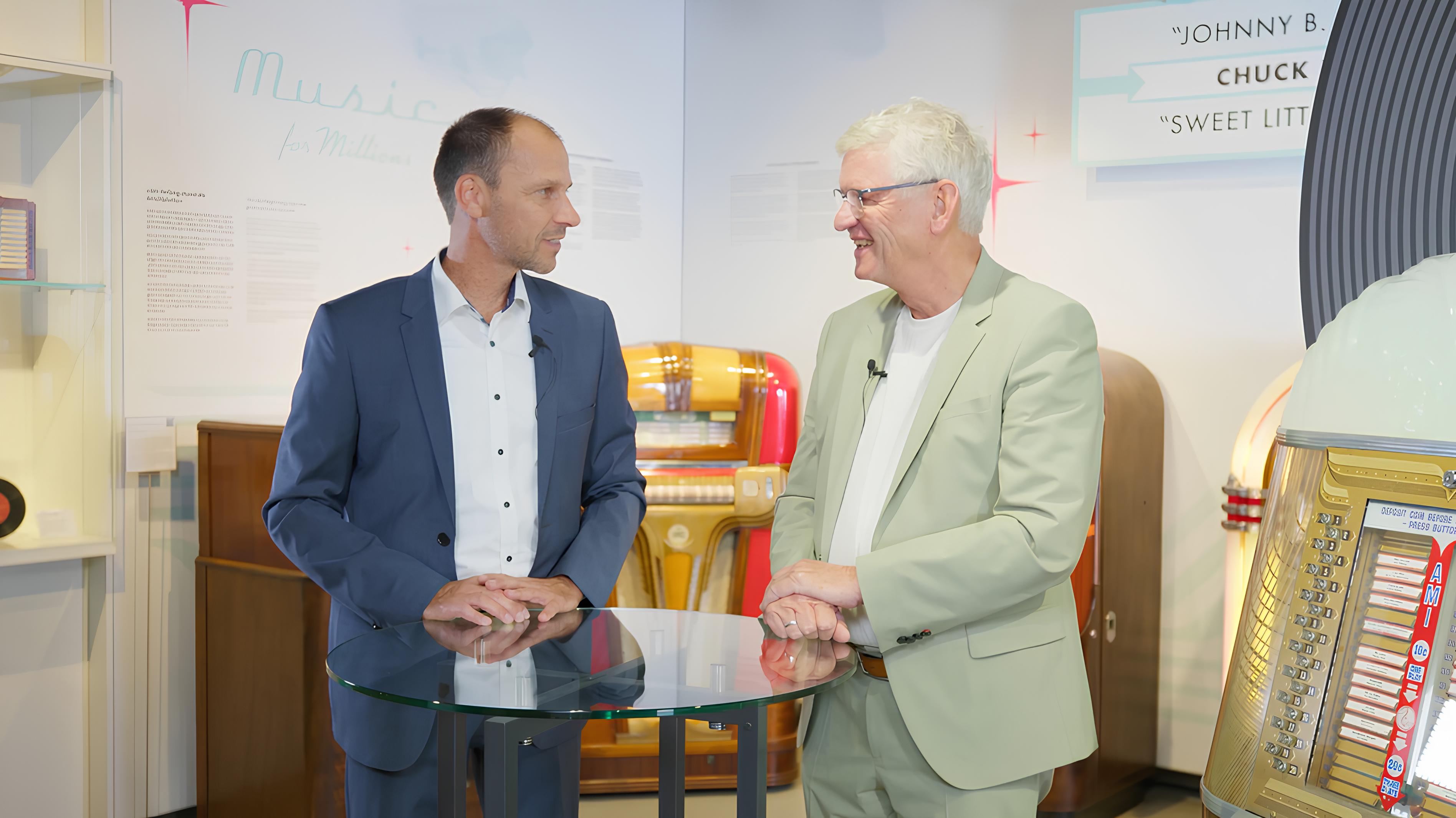 Anlässlich des 40-jährigen Bestehens der Sammlung Gauselmann trafen sich Michael Gauselmann (rechts) und Museumsleiter Sascha Wömpener zu einem Gespräch, bei dem sie die Meilensteine Revue passieren ließen.